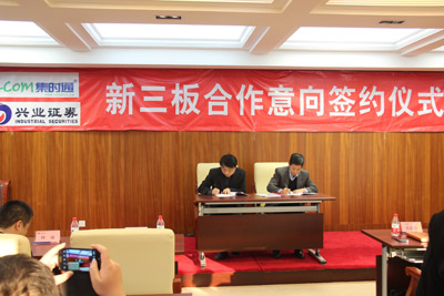 为了提升公司影响力,更好融入资本市场,2014年12月21日,“集时通(福建)信息科技有限公司与兴业证券新三板合作意向签约仪式”在兴业证券大厦隆重举行。集时通CEO苏总、兴业证券副总裁陈总以及福建拓维律师事务所合伙人郭总等出席签约仪式。本次新三板合作意向签约仪式,标志着公司在股改上市的现代企业发展道路上迈上了新的台阶。