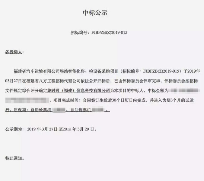 近日,集时通凭借成熟的方案、过硬的技术和优质的服务杀出重围,成功中标福建省汽车运输有限公司场站智能化售、检设备采购项目。此次项目的中标充分显示了集时通在客运信息化领域的行业认可度和客户对集时通的信任。
