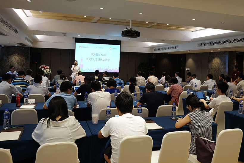 当下教育行业面临着信息化向数字智慧化转型的机遇与挑战,为落实信息通信技术和教育实践深度融合的核心思想,促进校园智能化及ICT产教融合创新人才生态建设,加强高校对新工科ICT专业群建设的各维度的剖析与认识。2019年6月21日下午 ,由华为技术有限公司、集时通(福建)信息科技有限公司以及泰克教育集团联合举办的“华为智慧校园及ICT人才培养交流会”在福州西湖大酒店举行。全省20多家院校领导、ICT专业建设负责人和教师共襄盛会,分享智慧校园及ICT产学合作成果。