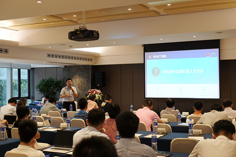 会上,业界学者、华为专家分别详细介绍了新时代教育信息化发展趋势、华为智慧校园解决方案、华为ICT学院校企合作、同时分享了新工科背景下的政产教融合创新人才培养模式和丰硕经验。