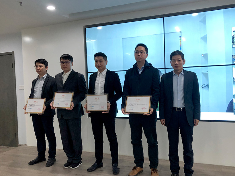 接着,公司COO李向东宣读了经公司董事会通过的任命书,公司的3位80后中坚力量关延垒、丁琛、廖东旭晋升公司副总经理,和公司CIO陈宁、CTO林辉一起从苏总手上接过任命书并发表了任职感言以及2020年的工作报告,苏总在最后的总结发言,新任命的几位副总虽然年龄不大,最小的才30出头,但在公司时间都超过10年,都是集时通自己培养出来的人,在公司的各个岗位都经过历练,有责任,有担当,懂技术,能够独挡一面,希望集时通未来5-10年,在这些80后领导下,实现跨越发展,为行业信息化的发展和科技进步做出集时通人的贡献。