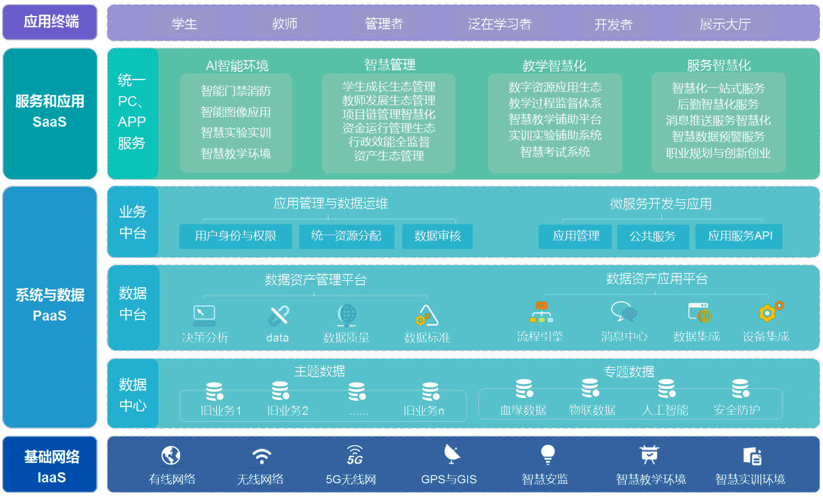 “大中台+微服务”全新定义业务架构,更灵活的支持高校业务创新将数字技术与校园教学、科研、管理、服务业务深度融合,实现智慧教学环境、教学资源、智慧教学、智能治理的持续创新 |
